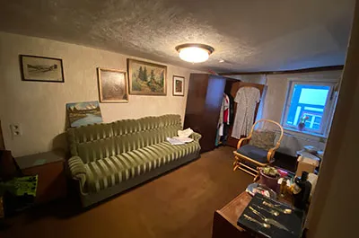 Das Gebäude ist unbewohnt, verfügt aber über eine gute Grundsubstanz. Heizung, Strom und Wasser sind nutzbar